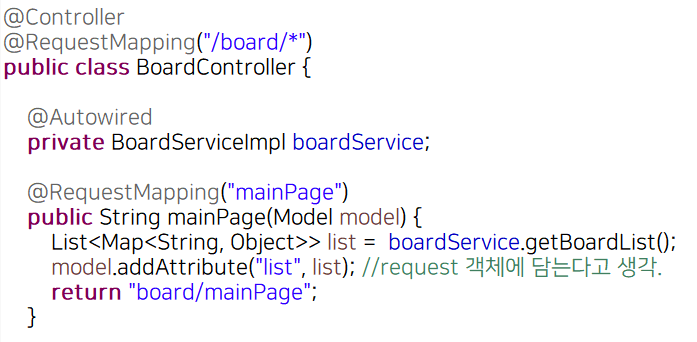 model.addAttribute("list", list); //request 객체에 담는다고 생각.