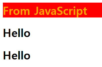 querySelector() 메서드는 문서 객체 하나만 선택하기 때문에 가장 먼저 등장한 h1 태그의 hello만 변경된 것이다.