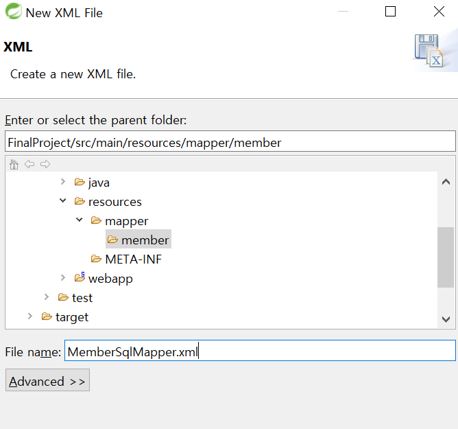mapper 하나 당 xml 하나를 만들어주어야한다.