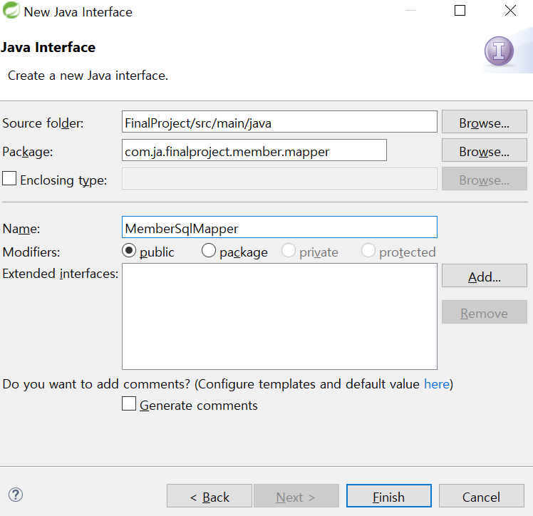 이제 인터페이스 1개 , xml 1개 생성해주면 된다.